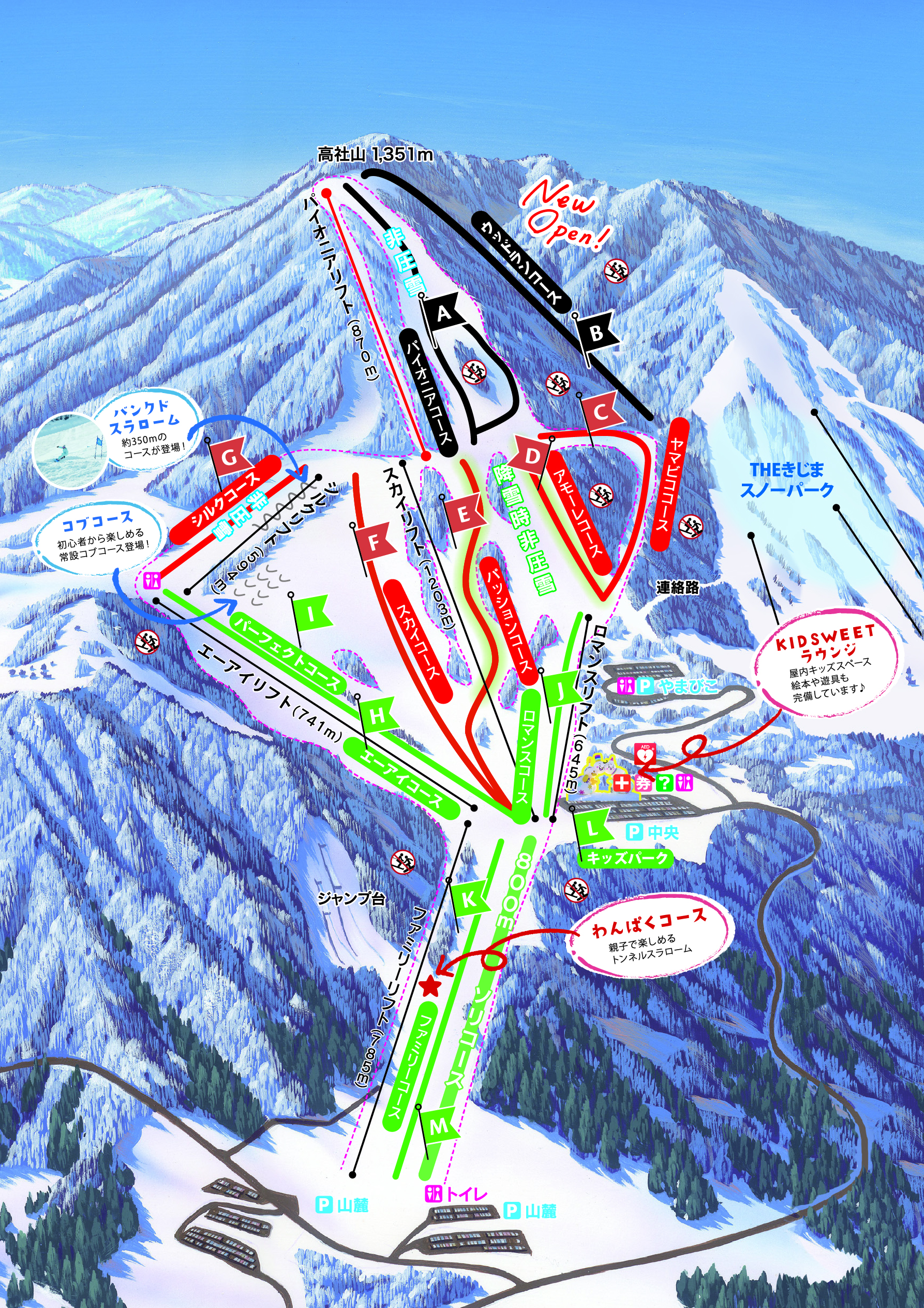 シーズン途中からは、コース脇に出来るこぶコースが楽しめ、降雪時のアモーレコースでは、コース中央の圧雪とコース端の非圧雪が楽しめます。