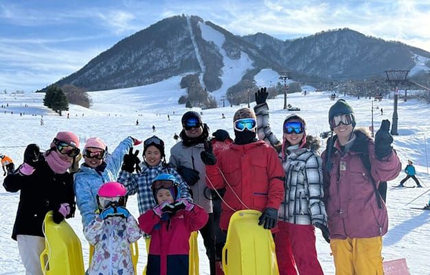 友達、家族、カップルが一緒に並んで滑ってもこの広いコースであれば自由に滑る事も可能です。