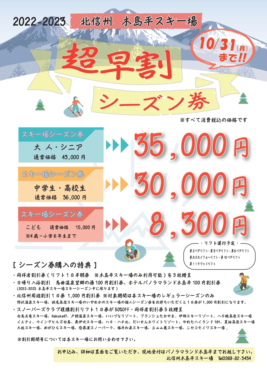 2022-23シーズン 超早割シーズン券のお申込みについて