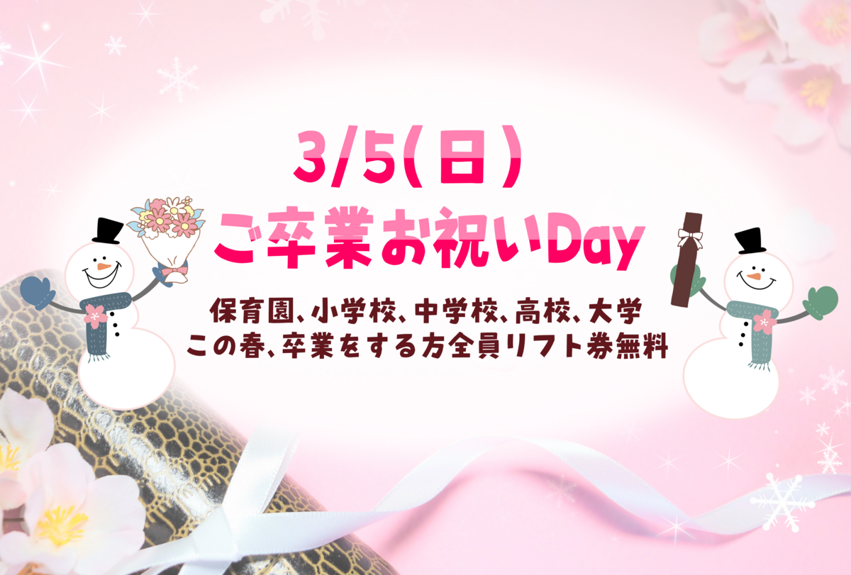 この春卒業される方はリフト券が無料になりますので、リフト券売場にてお申し出ください☺